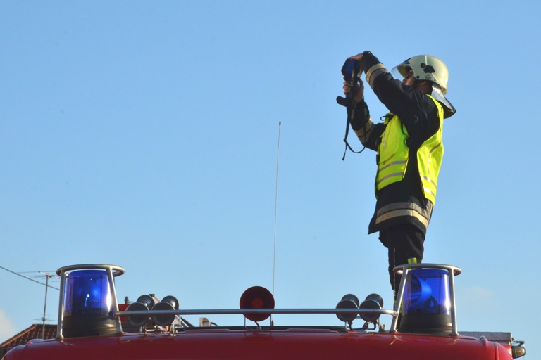 Mit der Wärmebildkamera auf der Suche nach möglichen Glutnestern.