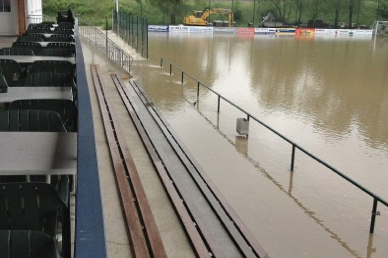 Das Hochwasser ist weg, hat aber auf dem Sportgelände jede Menge Arbeit und Schäden hinterlassen – unter anderem ist die Heizung ist kaputt