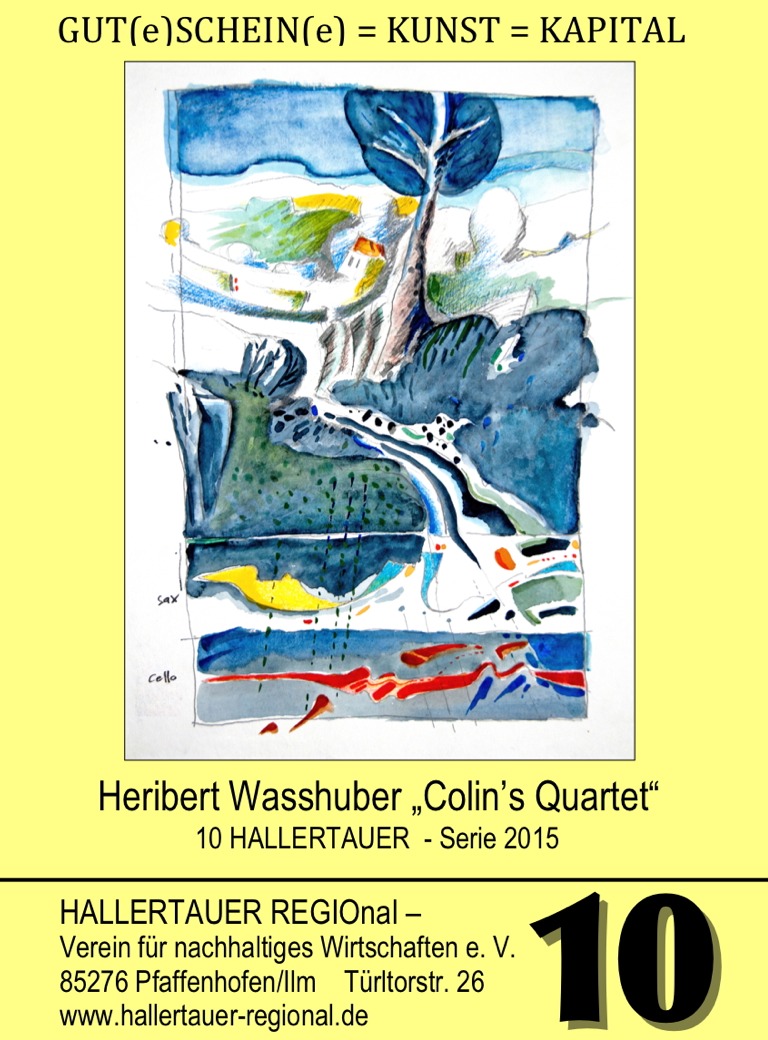 (ty) Die „Soziale Skulptur Hallertauer“ wirkt mit und in verschiedenen Projekten: Inter-Kultur-Garten, Blumen in der Stadt, Arbeitskreis Inklusion, Asyl-Netz-Werk und nicht zuletzt in der Regionalgeld-Initiative „Hallertauer“ mit dem dazugehörigen Verein für nachhaltiges Wirtschaften. Die neue Regionalgeld-Serie hat die Malerei als Thema; sie lässt Farbe sprechen. Sieben in Stadt und Land bekannte Malerinnen und Maler haben die neuen Scheine mit ihren Motiven gestaltet: Reiner Schlamp, Heribert Wasshuber, Manfred Leeb, Heike Habl, Inge Maerker, Philipp Brosche und Sigi Braun.
