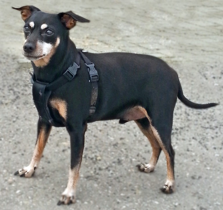 Der elfjährige, kastrierte Zwergpinscher hat ein bisschen zu viel auf den Rippen und hofft auf ein neues Zuhause mit einem ruhigen Plätzchen