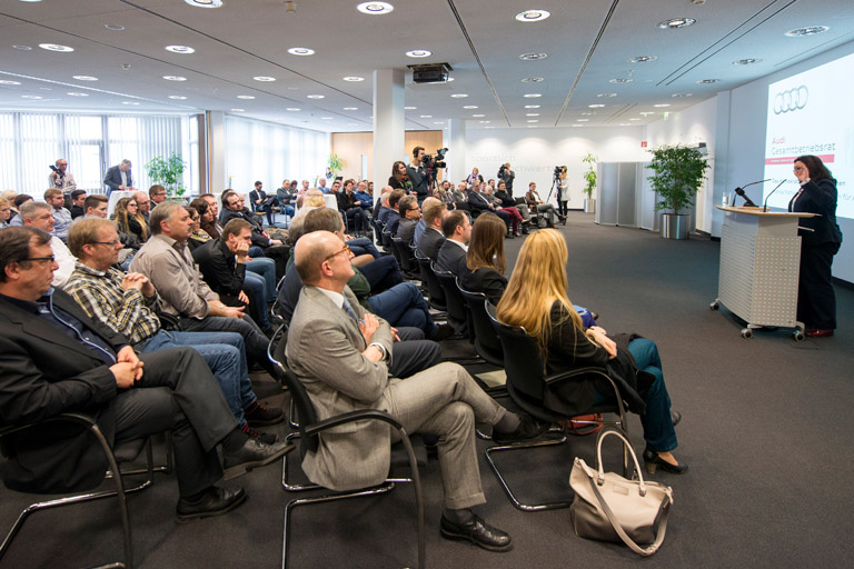 Auf Einladung des Gesamtbetriebsrats sprach Bundesministerin Andrea Nahles (SPD) bei Audi in Ingolstadt über mehr Demokratie im Unternehmen