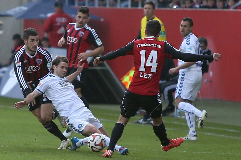 Karlsruhe ließ Ingolstadt machen. Setzte auf Defensive, wollte einfach nur kein Tor kriegen sowie hie und da den Spielfluss (zer)stören. Und lauerte auf Fehler der Schanzer oder sonstige glückliche Fügungen. Wie sehr die Marschroute des KSC nach hinten ausgerichtet war, zeigte sich an einem Freistoß in der ersten Halbzeit, den die Gäste freiwillig an der Mittellinie ausführen wollten, obwohl er mindestens 15 Meter weiter vorne hätte stattfinden dürfen.