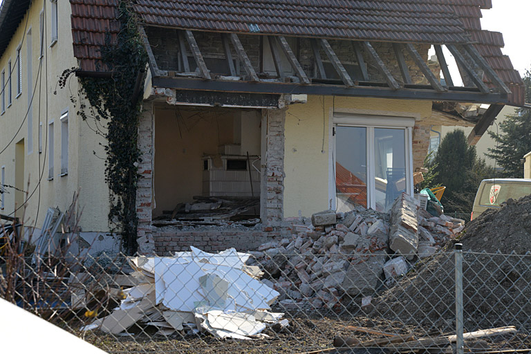 Wie berichtet wurde durch herabfallende die Fassade des Nachbaranwesens leicht beschädigt. Ebenso wurde der Pkw eines Nachbarn beschädigt, als er zum Zeitpunkt des Einsturzes am Grundstück vorbeifuhr. In dem Zweifamilienhaus fanden bereits seit mehreren Wochen umfangreiche Umbau- und Renovierungsarbeiten statt. Der Sachschaden beläuft sich nach ersten Schätzungen auf rund 100 000 Euro.