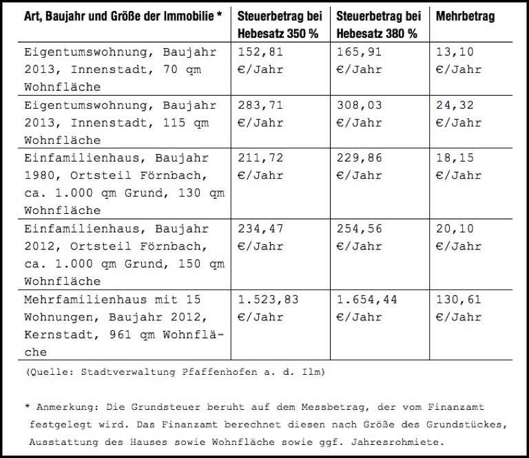 Doch der Kelch der steigenden Gewerbesteuer geht nun erst einmal an den Pfaffenhofener Geschäftsleuten vorüber – Dachii-Sankoy sei Dank. Anders sieht es in Sachen Grundsteuer B aus. Da ließ sich die bunte Koalition nicht beirren und drückte die geplante Erhöhung durch. Was das für die Bürger konkret bedeutet, wenn es trifft und um wie viel tiefer man dann in die Tasche greifen muss, haben wir im Folgenden noch einmal anhand von Daten und Angaben aus dem Rathaus zusammenstellt.