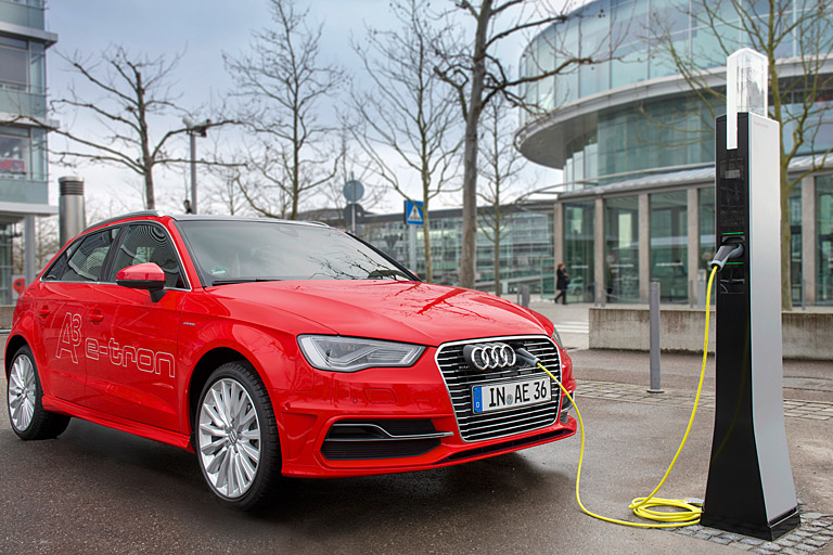 Mit ihrem genormten Anschluss sind die Ladesäulen auf alle für den deutschen Markt zugelassenen Elektroautos und Plug-in-Hybride vorbereitet. Seit 2014 fertigt Audi am Standort Ingolstadt sein erstes Plug-in-Hybridmodell. Der Audi A3 Sportback e-tron bietet alltagstaugliche Elektromobilität. Die Kombination aus einem leistungsstarken Elektromotor mit einem effizienten 1,4-Liter-TFSI-Verbrennungsmotor ermöglicht mehr als 900 Kilometer Reichweite. Rund 50 Modelle fahren täglich im Ingolstädter Werk vom Band. Für die kommenden Jahre plant Audi in jeder Baureihe einen Plug-in-Hybrid.