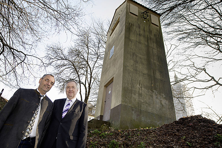 Dagobert Achatz, Geschäftsführer der Audi-Umweltstiftung, und Jürgen Kohmann, Erster Bürgermeister der Stadt Bad Staffelstein, unterzeichneten im Beisein von Gerhard Kunze, Artenschutz in Franken, und Christian Ziegler, Bayernwerk AG, jetzt den Projektvertrag. Nach dem Auftakt in Suhl soll nun auch in Bad Staffelstein ein Trafoturm umgebaut werden, damit dort vorkommende Arten wie Schleiereule, Großes Mausohr und Gehörnte Mauerbiene einen idealen Unterschlupf finden. So soll beispielsweise eine neue Dachkonstruktion plötzlichen Temperaturschwankungen entgegenwirken und Fledermäusen als Wochenstube dienen.