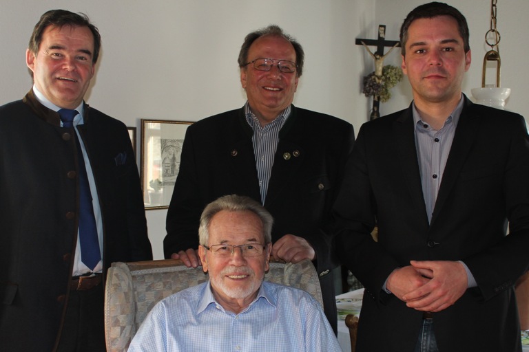 (ty) Der frühere Pfaffenhofener Bürgermeister Sepp Hobmeier freute sich heute über die Glückwünsche von drei weiteren Pfaffenhofener Bürgermeistern zu seinem 80. Geburtstag: Der amtierende Bürgermeister Thomas Herker (SPD) und sein Stellvertreter Albert Gürtner (FW) sowie Altbürgermeister Hans Prechter (CSU) hatten herzliche Grüße und kleine Geschenke mitgebracht. Sepp Hobmeier war als Stadtbaumeister beziehungsweise stellvertretender Stadtbaumeister drei Jahrzehnte lang für die Stadt Pfaffenhofen tätig und von 1984 bis 1990 Bürgermeister. Bis 2002 war er außerdem Mitglied des Kreistags und stellvertretender Landrat. Er engagierte sich auch im Alpenverein, der ihn im vergangenen Jahr zum Ehrenvorsitzenden ernannte. Hobmeier ist Träger der goldenen Stadtmedaille und wurde vor kurzem mit der Verdienstmedaille des Verdienstordens der Bundesrepublik Deutschland ausgezeichnet.