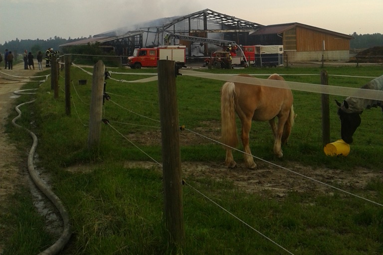 Gegen 3.15 Uhr ging am Sonntag die Mitteilung über den Brand bei der Einsatzzentrale des Polizeipräsidiums Oberbayern-Nord. ein Als die von der Integrierten Leitstelle alarmierten Feuerwehren an dem nordöstlich von Au am Aign gelegenen Anwesen eintrafen, stand der Pferdestall bereits im Vollbrand. Ersthelfern und den Feuerwehren gelang es, die 17 im Hauptstall eingestellten Pferde rechtzeitig aus dem brennenden Gebäude zu holen, so dass zumindest keines der Tiere zu Schaden kam.