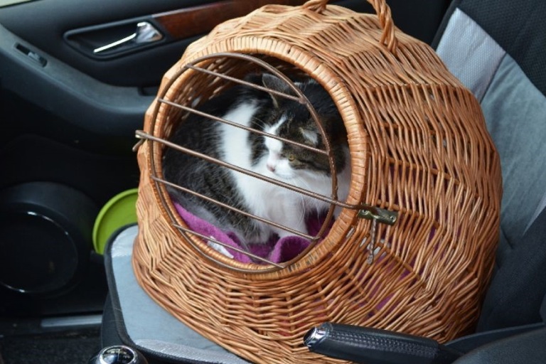 (ty) Am Donnerstag gegen 10.40 Uhr war eine 26-jährige Studentin mit ihrem Mercedes in München-Englschalking die Freischützstraße in Richtung Berg am Laim unterwegs; auf dem Beifahrersitz stand ein verschlossener Katzentransportkorb samt ihrer Katze (siehe Foto oben). Aus bislang unbekannten Gründen konnte das Tier den Korb unbemerkt öffnen und sprang ihrem Frauchen plötzlich und unerwartet auf den Schoß. Dadurch erschrak die 26-Jährige und verriss das Lenkrad nach rechts. Der Wagen prallte gegen die geöffnete Tür eines Fiat Punto, in den eine 91-Jährige gerade einsteigen wollte. Die Seniorin wurde mitgerissen und zog sich eine Unterarmverletzung zu; sie musste ins Krankenhaus. Der Fiat wurde durch die Wucht des Aufpralls auf einen davor geparkten Ford Transit geschoben. Die 26-jährige Mercedes-Fahrerin und ihre Katze blieben unverletzt. Der Gesamtschaden wird auf etwa 15 000 Euro geschätzt.