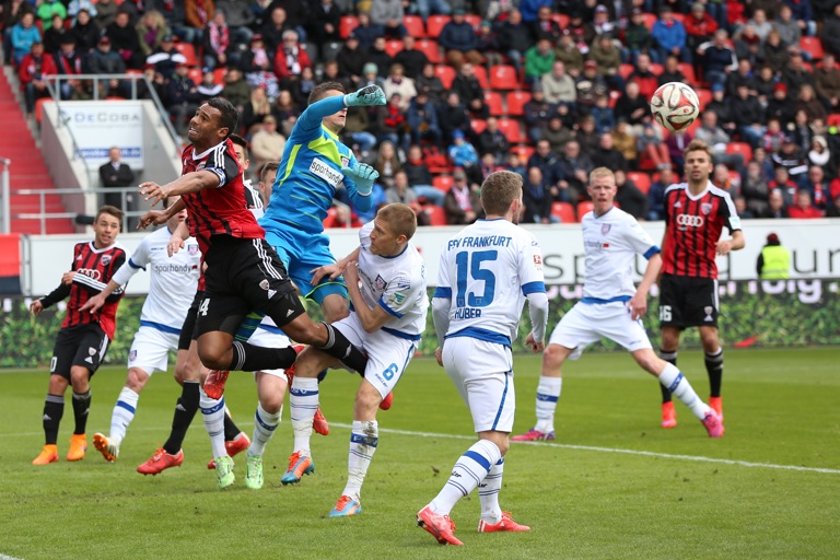 Auf der Gegenseite wurde Lukas Hinterseer in er 34. Minute von der FSV-Defensive in höchster Not gestoppt. In der 42. Minute kam Morales im Strafraum der Frankfurter zu Fall – doch der Schiri verweigerte, wohl zu Recht, den Elfmeter-Pfiff. Ingolstadts Co-Trainer Michael Henke allerdings brachte diese Entscheidung auf die Palme, er wollte einen klaren Kontakt gesehen haben.