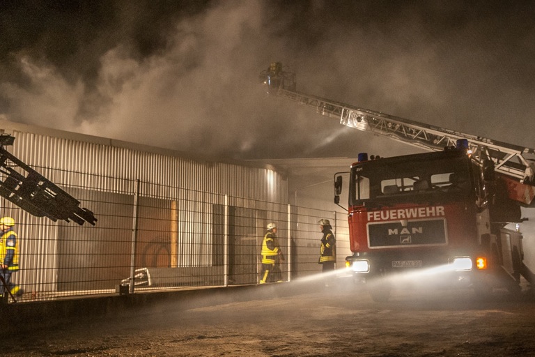Großfeuer im Geisenfelder Gewerbegebiet: 300 000 Euro Schaden, keine Verletzten, Ursache noch unklar, Kripo ermittelt