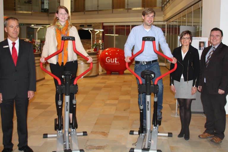 Für den gesamten Landkreis wurden 16 hochwertige Power-Stepper von Kettler im Gesamtwert von fast 9000 Euro als Preise ausgelobt. Jeder Marktbereich konnte die Fitness-Geräte eigenständig verlosen. Das Los hat entschieden und Kathrin Zettl (Pfaffenhofen) sowie Andreas Ettl (Gachenbach) haben bei der Verlosung der Pfaffenhofener Sparkasse gewonnen. Marktbereichsleiter Bernhard Mayer, Vermögensmanagement-Abteilungsleiter Helmut Müller und Private-Banking-Beraterin Marlene Kappelmeier übergaben die Geräte.