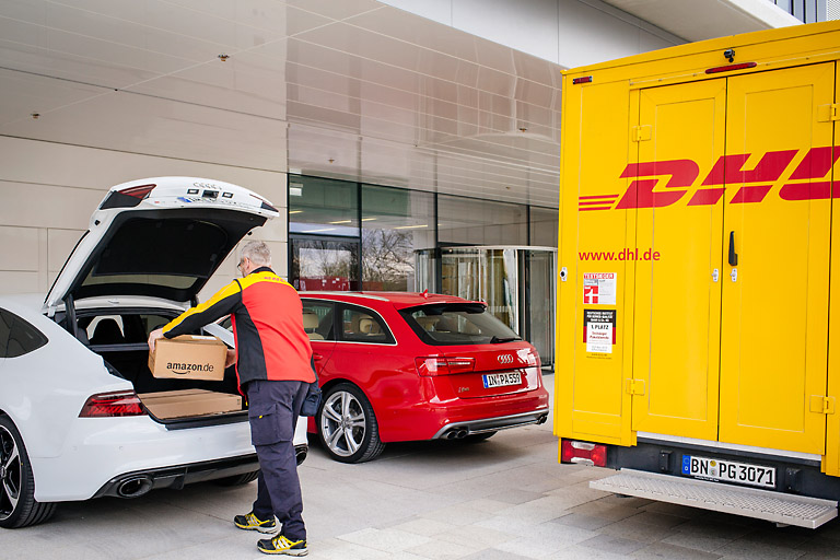 Der neue Service soll Kunden in Zukunft die Möglichkeit bieten, bei der Online-Bestellung ihren Audi als Lieferadresse anzugeben. Im Rahmen des Pilotprojekts erfolgt die Zustellung durch DHL Paket. Entwicklungspartner Amazon bietet seinen Kunden als erster Online‑Händler die Lieferung in den Kofferraum an.