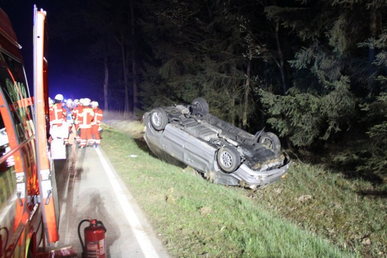 Pkw kam zwischen Langquaid und Hausen von der Kreisstraße ab und landete auf dem Dach im Graben – Fahrer leicht verletzt