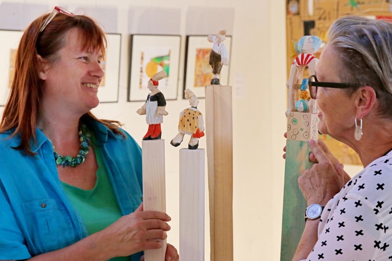 "Kunst im Gut"-Macherin Margit Grüner, hier im Gespräch mit Künstlerin Heidi Stulle-Gold.