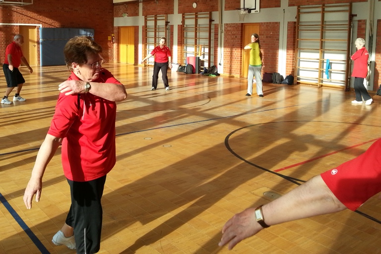 (ind) Im Rahmen ihrer wöchentlichen Gymnastikstunden in der neueren Sporthalle der Pfaffenhofener Joseph-Maria-Lutz-Schule hatte die Gymnastik-Gruppe des BC Uttenhofen mit Karin Sedlmeier von der Qi-Gong-Schule Wolnzach-Gosseltshausen eine Referentin zu Gast, die manch neue Idee mitbrachte. Den Aufwärmpart gestaltete das bewährte Trainerduo Hans-Georg Reger und Rita Wittmann, die Gastreferentin zeigte sich dabei beeindruckt vom Übungsprogramm der BCU-Gymnastikgruppe.