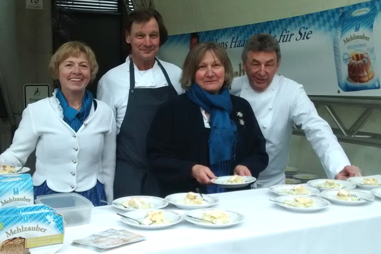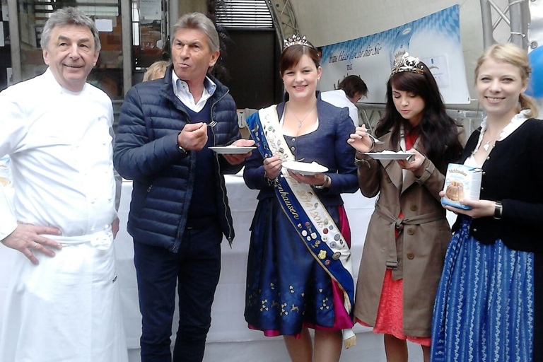 Mit dabei war auch die Schellermühle aus Reisgang bei Pfaffenhofen. Zusammen mit dem Sternekoch vom Münchner Tantris, Hans Haas, gab es am Stand eine ganz besondere und kostenlose Verkostung: Palatschinken mit Spargelmarinade. Der Palatschinken wurde mit dem „Wiener Grießler“ der Schellermühlen-Marke „Mehlzauber“ gebacken, der Spargel stammte vom Spargelbauern Wenger aus Ried, organisiert hatte ihn Plöckl persönlich.
