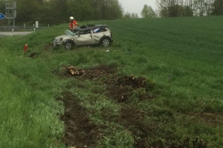 Mini-Cooper überschlägt sich an der Autobahn-Ausfahrt Pfaffenhofen – 47-Jährige im Wrack eingeklemmt, 16-jähriger Sohn leicht verletzt
