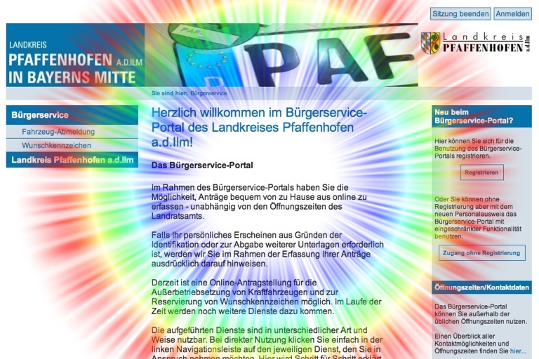 Das neue Bürgerservice-Portal findet man auf der Internetseite des Landkreises Pfaffenhofen www.landkreis-pfaffenhofen.de sowohl auf der Startseite als auch unter der Rubrik „Landratsamt“. Weitere Fragen zum Thema beantwortet die Zulassungsstelle unter der Nummer (0 84 41) 27 50 4.