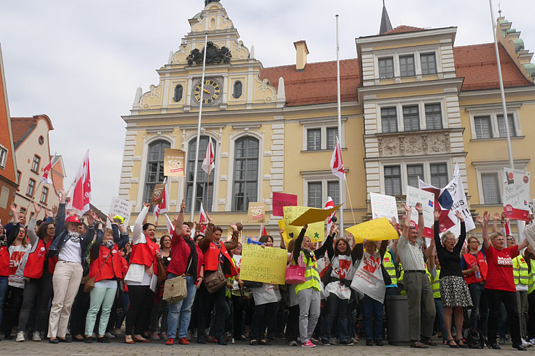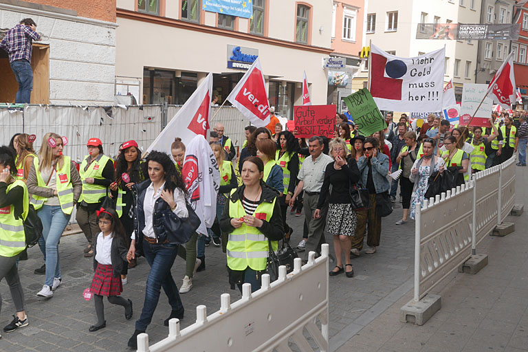 Rund 600 Erzieherinnen und Erzieher aus der gesamten Region machen in der Ingolstadt Innenstadt auf ihre Forderungen aufmerksam