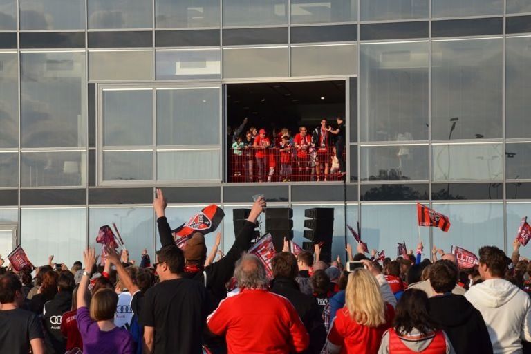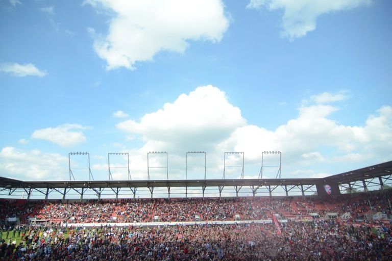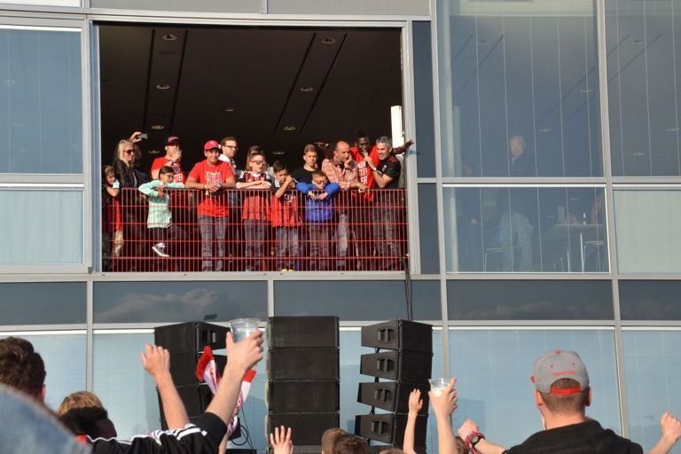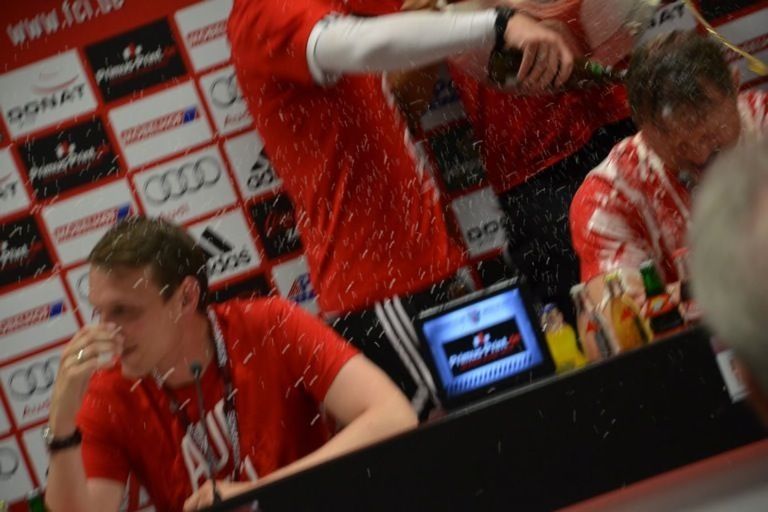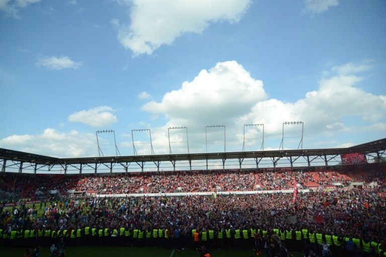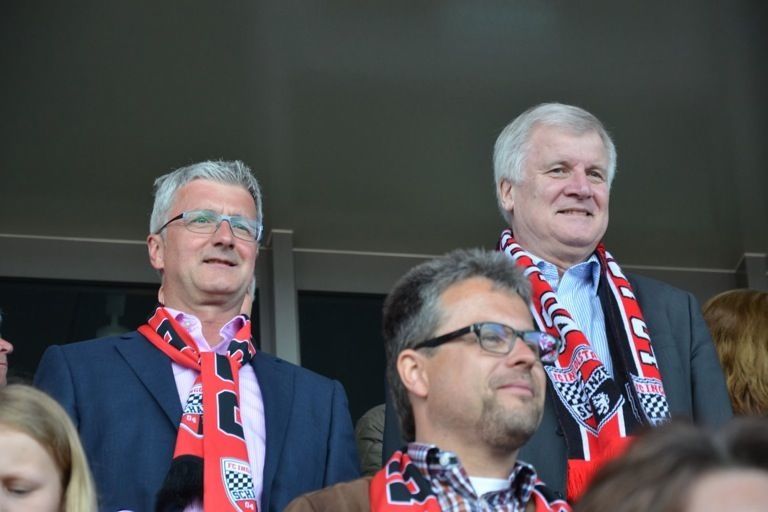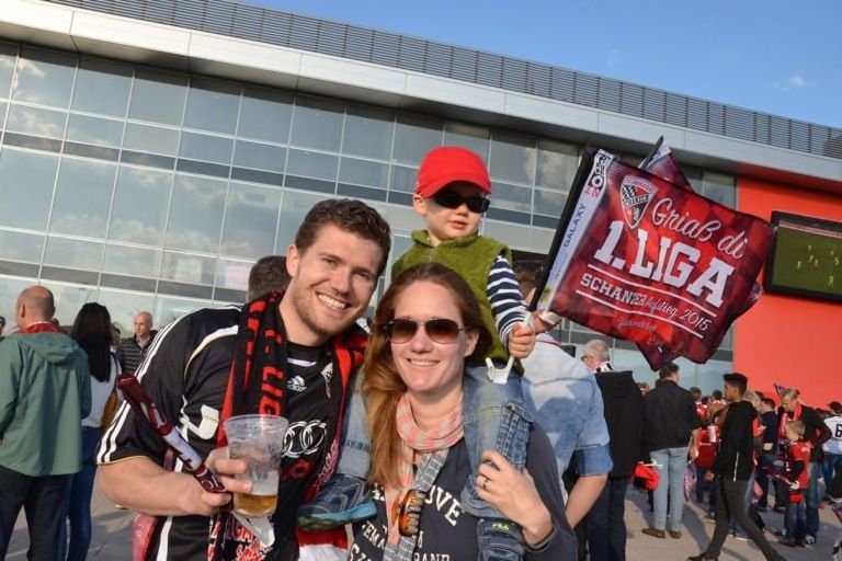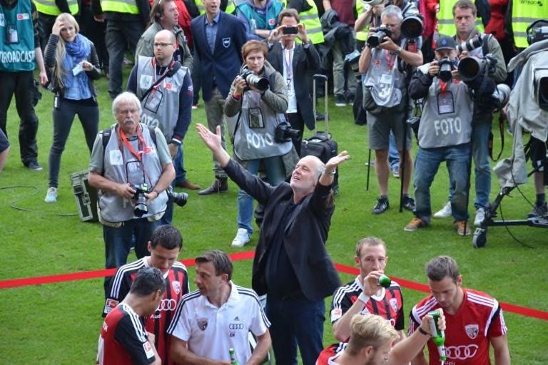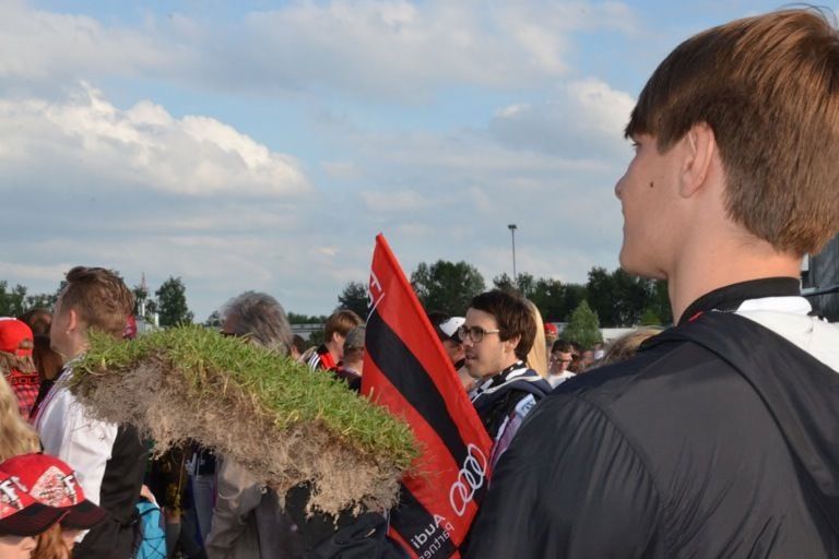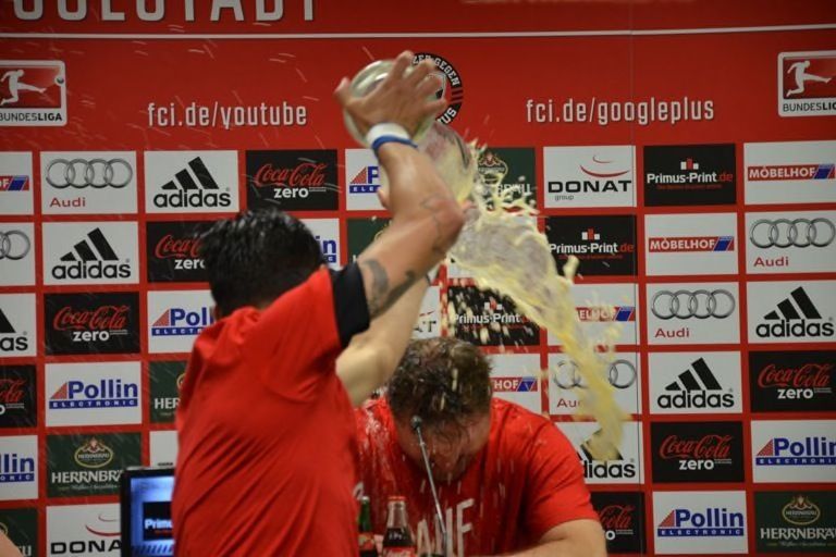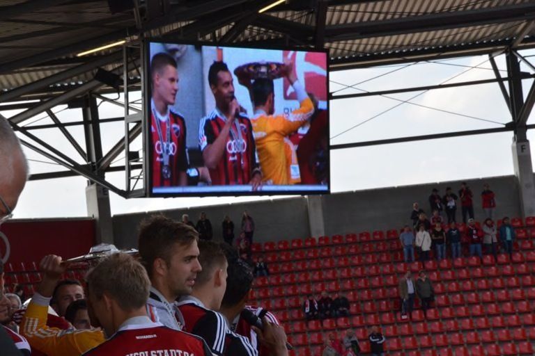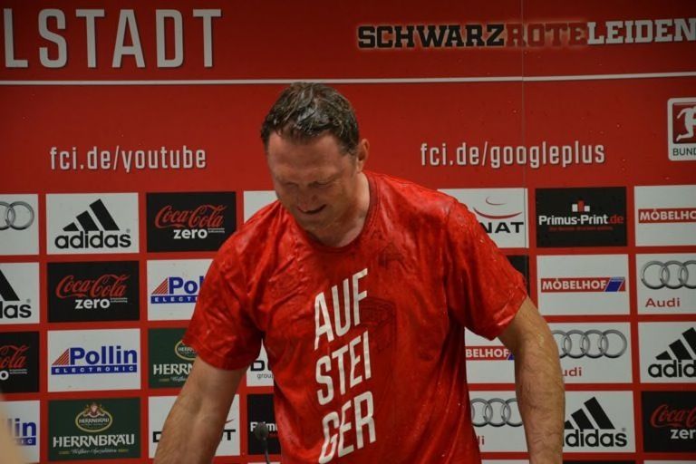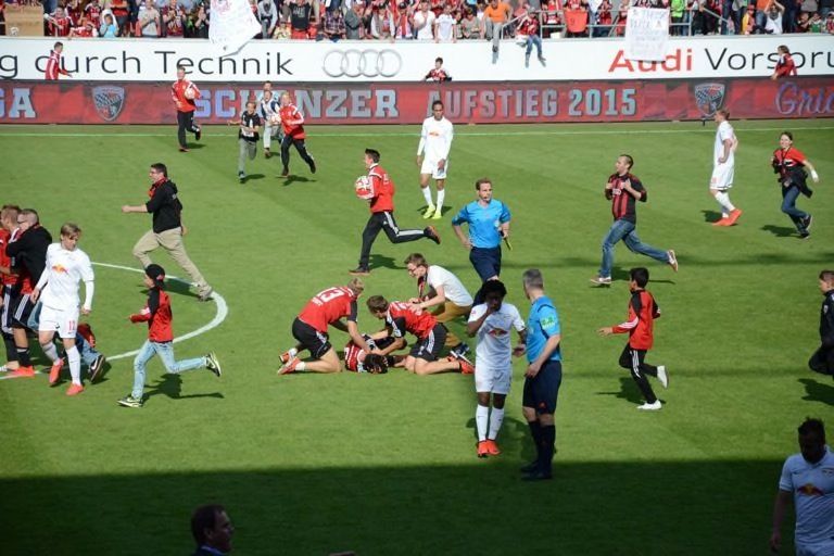 (ty) Mit dem 2:1-Heimsieg gegen RB Leipzig hat der FC Ingolstadt heute nicht nur den Aufstieg in die erste Fußball-Bundesliga klargemacht, sondern zugleich den Meistertitel eingefahren. Da kannte der Jubel im Audi-Sportpark keine Grenzen mehr. Nur elf Jahre nach seiner Gründung schießt sich der FCI ins Fußball-Oberhaus und tritt in der kommenden Saison gegen Teams wie den FC Bayern München, Borussia Dortmund oder Schalke 04 an. Was sich nach dem heutigen Schlusspfiff auf und neben dem Rasen abgespielt hat, das lässt sich mit Worten schwer beschreiben. Wir haben für Sie eine große Bildergalerie zusammengestellt: Feiernde Spieler, jubelnde Fans, applaudierende Promis – und ein Trainer, der sogar noch in der Pressekonferenz eine Bierdusche bekam. Aber sehen Sie selbst...