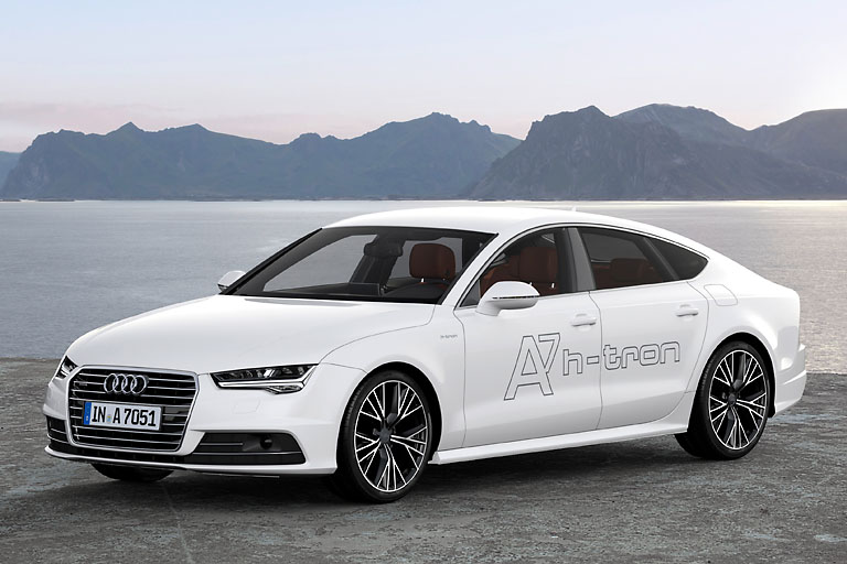Er legt mit einer Tankfüllung mehr als 500 Kilometer zurück – und aus dem Auspuff kommen nur ein paar Tropfen Wasser: Der A7 Sportback h-tron quattro nutzt einen starken, sportlichen Elektroantrieb mit einer Brennstoffzelle als Energielieferanten, kombiniert mit einer Hybridbatterie und einem zusätzlichen Elektromotor im Heck. Seine Antriebsauslegung macht den emissionsfreien und 170 Kilowatt starken Audi A7 Sportback h-tron quattro zum echten quattro – ein Novum bei Brennstoffzellenautos.