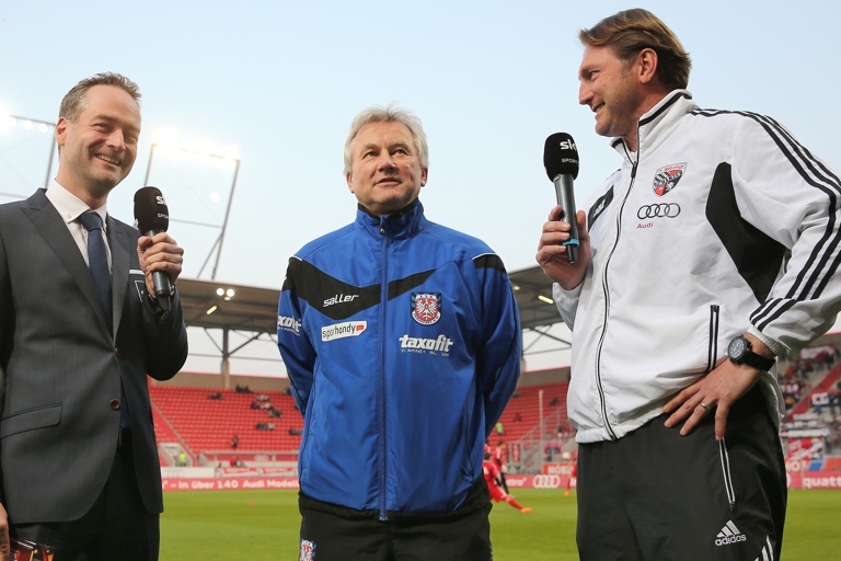 Bild aus der Saison 2013/14: FSV-Frankfurt-Trainer Benno Möhlmann und FC-Ingolstadt-Cheftrainer Ralph Hasenhüttl im Interview.