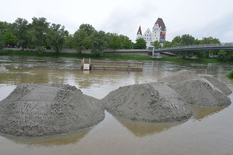 Die Ingolstädter Donaubühne steht pünktlich zur geplanten Eröffnung natürlich wieder mal unter Wasser