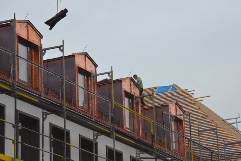 Der Giebel wurde durch eine Dachschräge ersetzt; hier ein Bild während der Bauphase.
