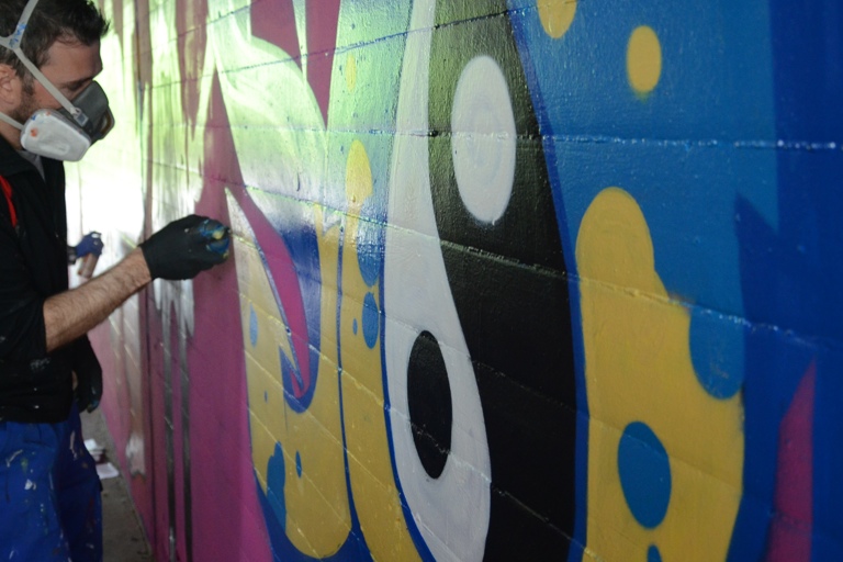 (ty) Zwei Tage lang versprühten junge Leute an diesem Wochenende im wahrsten Sinne des Wortes wieder Kreativität. Die Pfaffenhofener Stadtjugendpflege hatte einmal mehr zum Graffiti-Workshop geladen. 14 Teilnehmer nahmen das Angebot diesmal an und wagten sich an die Dosen. Unter Anleitung des hiesigen Könners Andi Dill (29) entstanden dabei gestern und heute in der Krankenhaus-Unterführung bei der Dr.-Bergmeister-Straße ansehnliche Kunstwerke, wie auch die folgende Foto-Galerie beweist.