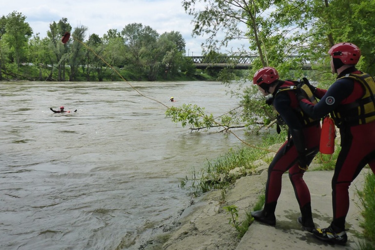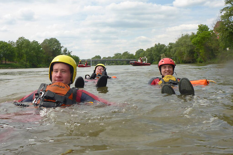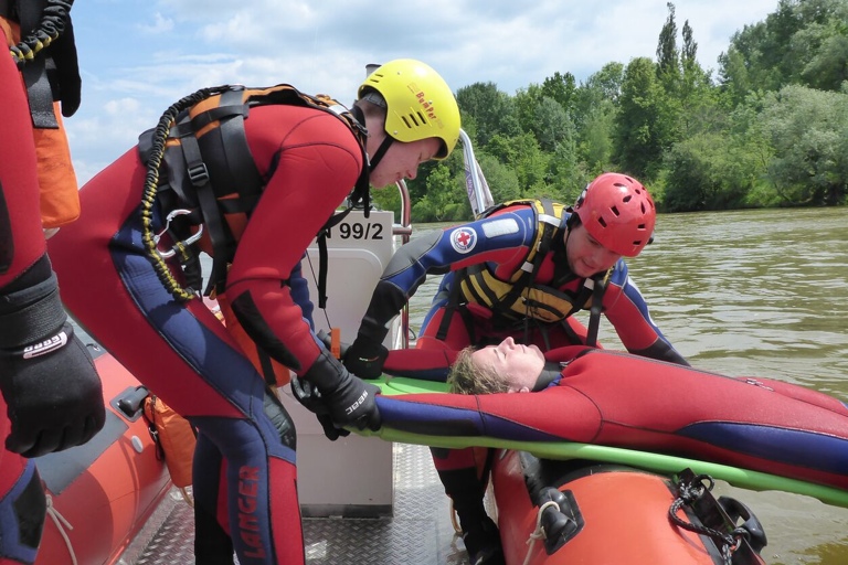 Übung für angehende Wasserretteranwärter in der Donau
