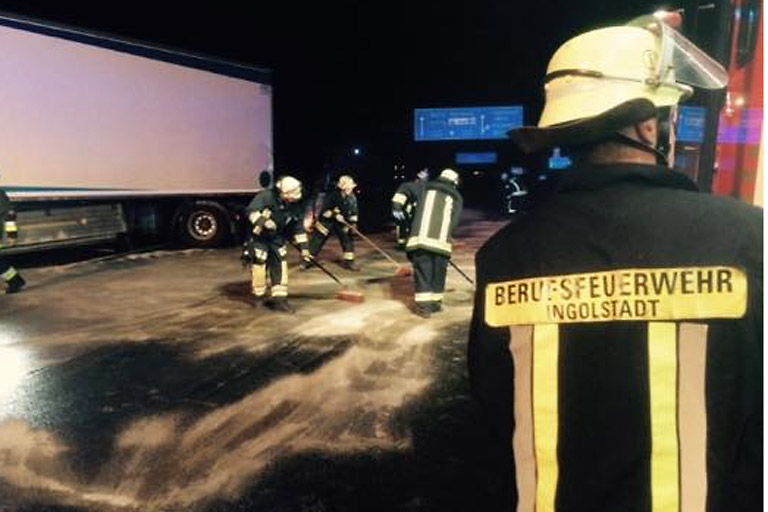 Bei einem Unfall auf der Autobahn bei der Ausfahrt Ingolstadt Ost wurde der Tank eines Lkw aufgerissen