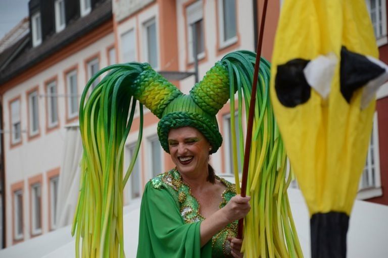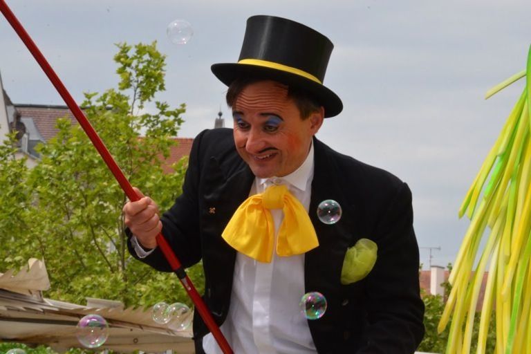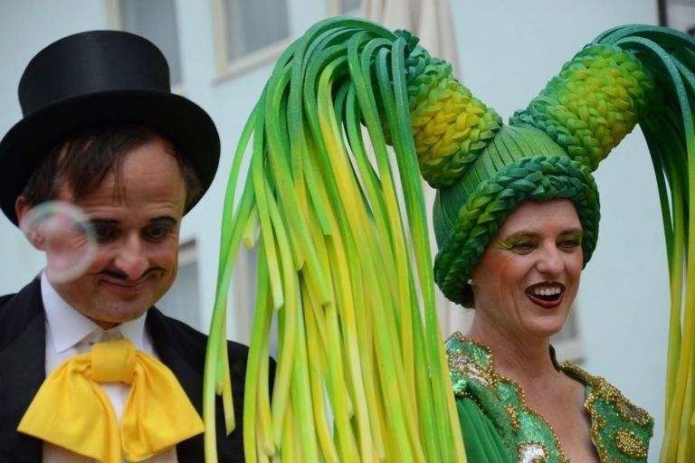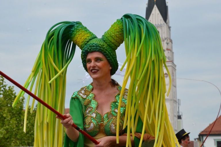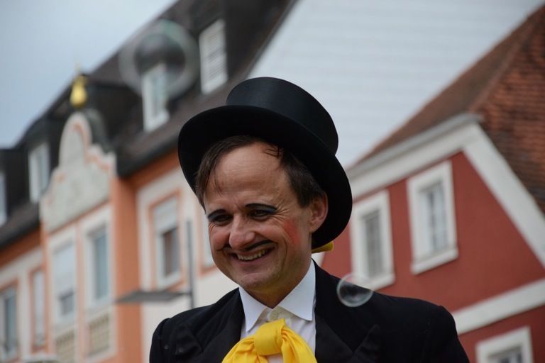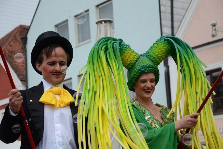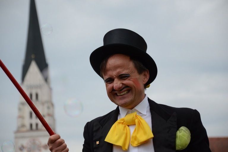 (ty) Bunt und fantastisch ging es heute Vormittag zu auf dem Pfaffenhofener Hauptplatz, wo der Rottaler Staatszirkus die Blicke auf sich zog. Manch einem ist das Artisten-Ehepaar mit seinen extravaganten und auffallenden Kostümen noch aus den Vorjahren in bester Erinnerung. Und auch heute haben Evelyne und Bernhard Weigl die Besucher des Wochenmarkts wieder mit Farbe, Frohsinn und Musik verzaubert.