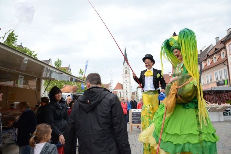 Mit den Stelzengehern vom Rottaler Staatszirkus begann heute die beliebte Reihe "Sommer in der Stadt", die bis August den Pfaffenhofener Wochenmarkt bereichert