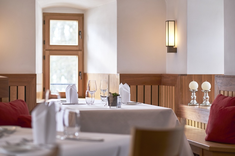 Die feinen Gerichte in Camers Schlossrestaurant aber werden den Gästen künftig in der großen Schlossstube serviert. Rund 40 Sitzplätze – bei Veranstaltungen auch mehr – stehen dort zur Verfügung. Außerdem verfügt das Restaurant nun über Nebenräume (wie Schloss- und Zirbelstube) in unterschiedlicher Größe für kleinere Gesellschaften; und für noch größere Veranstaltungen können auch Räume miteinander verbunden werden. Ein ganz besonderes Plätzchen ist die idyllische neue Sonnenterrasse des Camers direkt auf der Schlossinsel an der Südseite des Wasserschlosses, die aktuell entsteht und auf der ab Sommerbeginn serviert wird.