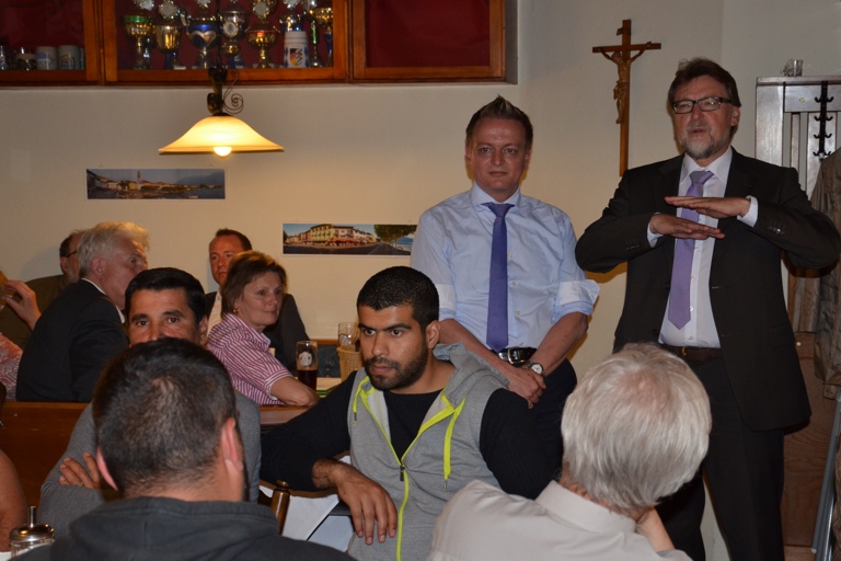 Rund 50 Leute waren gestern Abend zu der CSU-Veranstaltung im Pfaffelbräu am Hauptplatz gekommen, um sich von Wolf und Straub informieren zu lassen sowie mit ihnen zu diskutieren. Der Ortsvorsitzende Florian Schranz stellte gleich zu Beginn klar: „Wir wollen die beste Versorgung unserer Flüchtlinge.“ Doch die Unterbringung und die Betreuung der Asylbewerber vor Ort ist nur eine Dimension. Die andere sind die Fragen: Wie die nicht abebbenden Flüchtlingswellen denn künftig überhaupt noch zu bewältigen sein sollen und was man dagegen – in der großen Politik – tun könnte oder müsste.