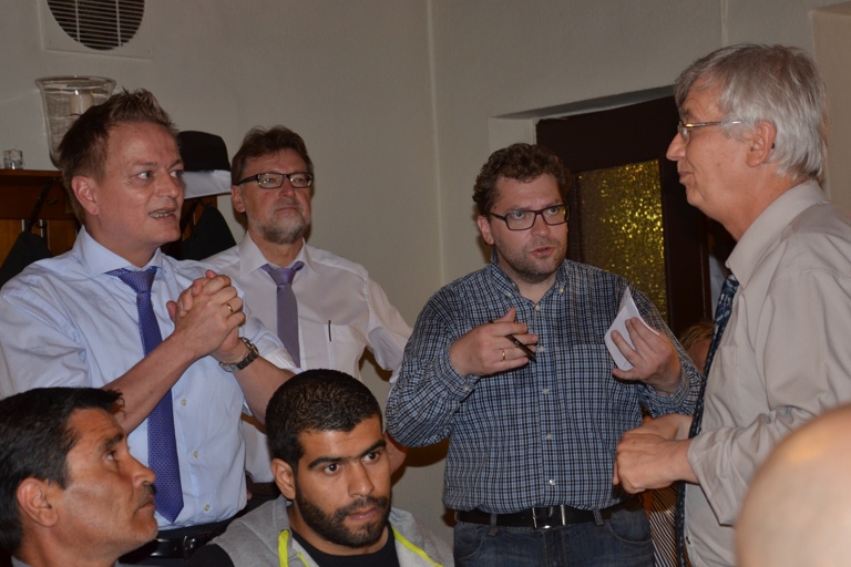 Angesichts der anstehenden Belegung von Turnhallen und der immer schwierigeren Frage nach der Unterbringung der Flüchtlinge regte ein Bürger an, man müsse „mehr Druck nach oben“ machen auf die große Politik – „ziviler Ungehorsam“, lautete die Stoßrichtung. Denn es könne doch nicht sein, dass einige Länder von der EU und von EU-Geldern profitieren, aber keine Asylbewerber aufnehmen beziehungsweise sie schlecht behandeln. Straub machte, wie gesagt, wenig Hoffnung auf eine Europa-Quote zur Verteilung der Flüchtlinge. Und auch mit der freiwilligen Aufnahme von Asylbewerbern sehe es bei vielen EU-Ländern schlecht aus. „Absagen durch die Bank“, fasst Straub zusammen.