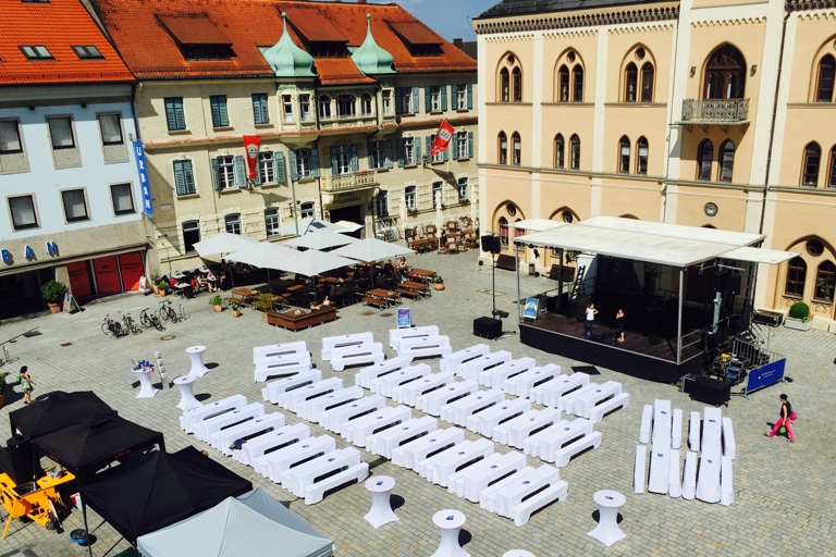 (ty) Es wird ziemlich voll heute Abend auf der Bühne, wenn die Stadt Pfaffenhofen feierlich ihr Sommerprogramm mit einem Open-Air am Hauptplatz eröffnet: Ein Blasorchester, die gestandene Brass-Formation „Express Brass Band“ aus München, spielt mämlich vor dem Rathaus zum Start in den Kultursommer 2015 auf.
