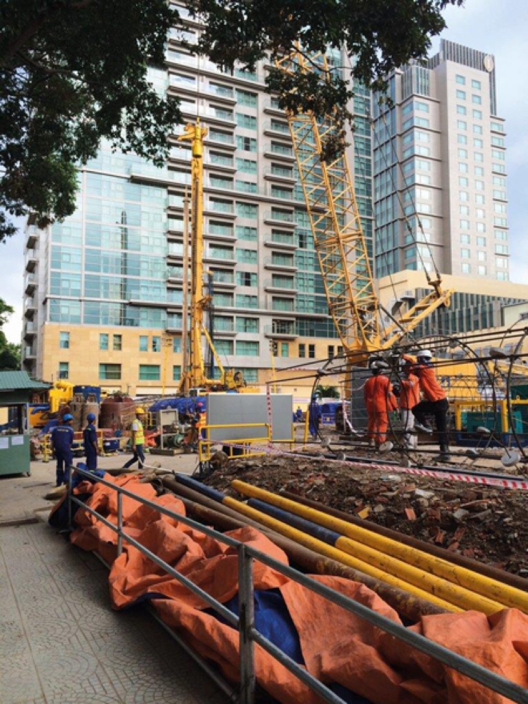 (ty) Das Deutsche Haus in Ho Chi Minh City, der größten Stadt Vietnams, soll ein Symbol der strategischen Partnerschaft zwischen Vietnam und Deutschland werden. Es wird nicht nur der künftige Amtssitz des deutschen Generalkonsuls sein, sondern auch wirtschaftlicher sowie kultureller Dreh- und Angelpunkt für deutsche Unternehmen und Institutionen in dem Land. Die Fertigstellung des 25-stöckigen Bürogebäudes mit rund 30 000 Quadratmetern Fläche ist für das Jahr 2017 geplant. Seit November vergangenen Jahres führte die Bauer Vietnam Ltd., die lokale Tochter der Bauer Spezialtiefbau GmbH aus Schrobenhausen, die Gründungsarbeiten aus, die kürzlich abgeschlossen wurden.
