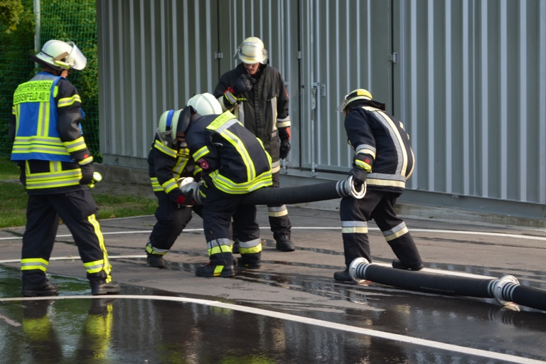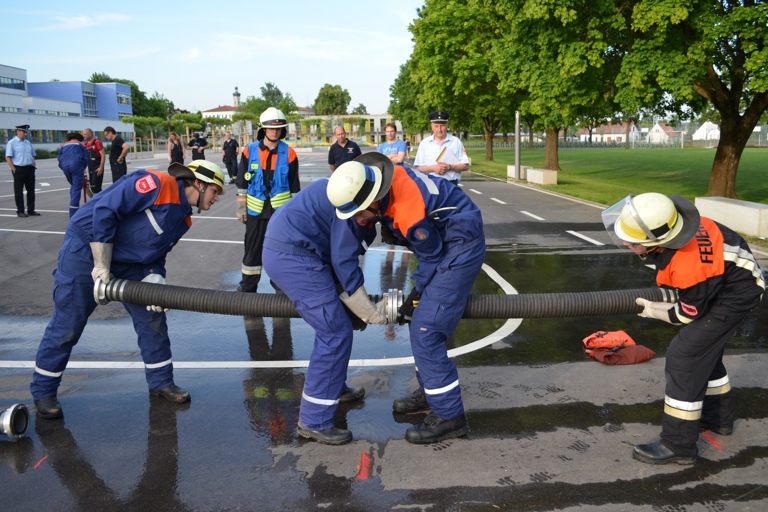 (ty) 17 Mitglieder der Feuerwehr Geisenfeld haben die Leistungsprüfung „Löschaufbau“ erfolgreich abgelegt. Nachdem vor einem Monat 15 Mitglieder die Leistungsprüfung „Technische Hilfeleistung“ erfolgreich bestanden hatten, folgte nun die Abnahme der Prüfung für die Brandbekämpfung. Zusammen mit ihren Ausbildern Richard Sorg, Sebastian Müller und Michael Kahner hatten die Prüflinge in den vergangenen Wochen auf dem Pausenhof der Mittelschule jeden einzelnen Handgriff immer wieder geübt.