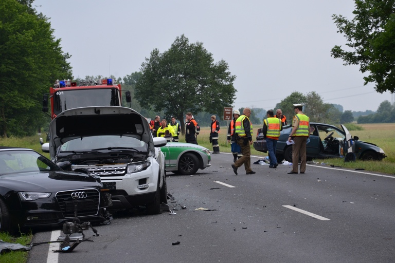 Der 32-Jährige aus Reichertshofen wurde in seinem PKW eingeklemmt. Er wurde von der Feuerwehr aus dem Fahrzeugwrack befreit. Noch an der Unfallstelle erlag er seinen schweren Verletzungen. Die Fahrer der weiteren unfallbeteiligten Fahrzeuge erlitten leichte Verletzungen. Bei dem Unfall entstand ein Sachschaden von rund 68 000 Euro. Die B 16 war bis 22.55 Uhr total gesperrt. An der Unfallstelle waren neben der Polizei, Rettungsdienst mit Rettungshubschrauber, die Feuerwehren aus Vohburg, Ernsgaden, Rockolding und Geisenfeld eingesetzt. Die Feuerwehr aus Großmehring war auf der Umleitungsstrecke im Einsatz. Zur Klärung des Unfallhergangs wurde ein Gutachter eingeschaltet.