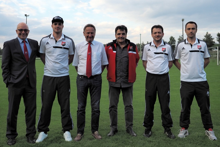 (ind) Seinen selbst erklärten Fußball-Wunschtrainer konnte der BC Uttenhofen für die kommende Saison 2015/16 verpflichten: Markus Ertl (Dritter von rechts) war von 1997 bis 2000 bereits als Spieler für den BCU aktiv und eine maßgebliche Stütze beim Aufstieg in die Kreisklasse im Jubiläumsjahr 1999. Er beendete seine aktive Laufbahn auch beim BCU. Nach einigen Jahren Pause engagierte sich Ertl als Trainer im Nachwuchsbereich, zuletzt bei der JFG Pfaffenhofen-Land, zu deren Gründern und Vorstandsmitgliedern er auch zählt.
