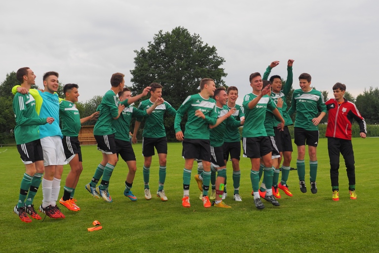 (ind) Mit einem 2:2-Remis sicherten sich die B-Junioren-Fußballer des BC Uttenhofen am vorletzten Spieltag die Meisterschaft in der U17-Gruppe Pfaffenhofen und damit den Aufstieg in die Kreisliga. Das Team hat bisher bei nur einer Niederlage und einem Torverhältnis von 85:18 sagenhafte 54 Punkte aus 21 Spielen auf dem Konto. Die Trainer Thomas Hollerauer und Josef Harrer feierten den Erfolg ausgelassen mit ihrer Mannschaft.
