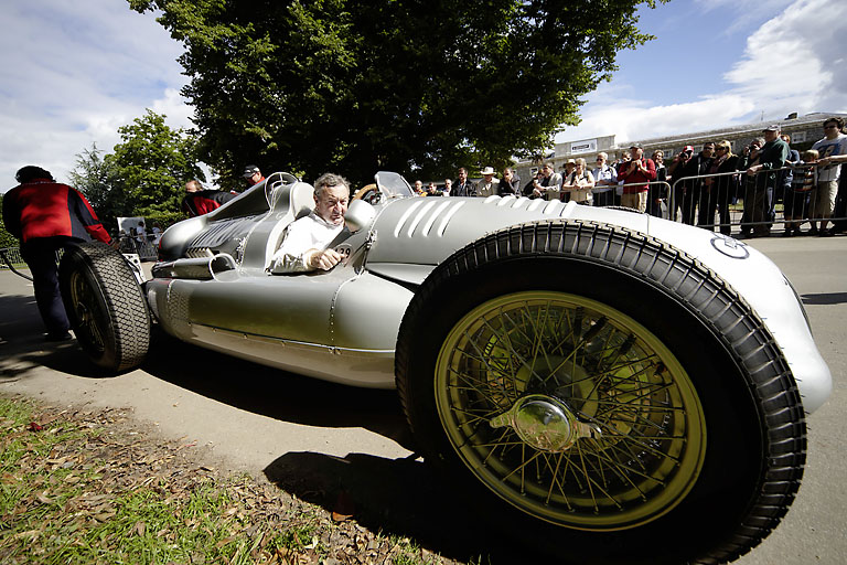 Publikumsliebling Nick Mason sitzt in Goodwood inzwischen zum neunten Mal für Audi Tradition hinter dem Steuer. „Es ist jedes Mal aufs Neue etwas ganz Besonderes, so ein Auto bewegen zu dürfen,“ sagt der Pink-Floyd-Drummer und Autoenthusiast. Der Auto Union Typ D Doppelkompressor war die letzte Entwicklungsstufe der Auto Union-Silberpfeile vor dem Zweiten Weltkrieg. 1939 gewann der 485 PS starke Zwölfzylinder die Großen Preise von Frankreich und Jugoslawien.