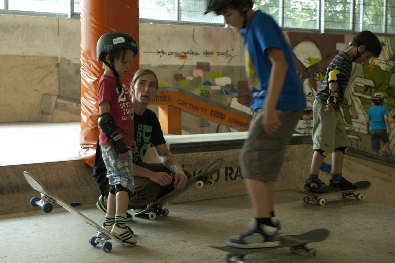 Workshop-Leiter Chris Rieger und die Stadtjugendpflege stehen den Teilnehmern für Tipps und Tricks jeglicher Schwierigkeitsstufen zur Verfügung. Rieger begleitet die Workshops der Stadtjugendpflege schon seit vielen Jahren und entwickelte aus diesem Engagement heraus auch seine Idee der Skateschule mit Shop. Sein momentan in der Skatehalle angesiedeltes „Studio_Wide Wood – kiddyskate“ wird im Rahmen des Studio-Projekts von der Stadtjugendpflege betreut und bietet derzeit jeden Samstag von 13 bis 15.30 Uhr sowie auf Anfrage weitere Kurse in den Sommerferien an.