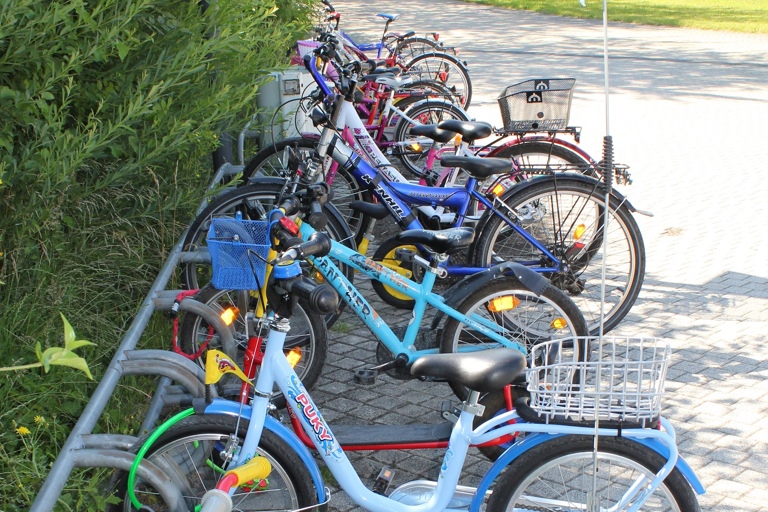 Vor dem Kindergarten Maria Rast in Niederscheyern steht nicht nur während der Kindermeilen-Aktionszeit ein großer Radl-Fuhrpark, hier kommen immer viele Mädchen und Buben mit dem Drahtesel.