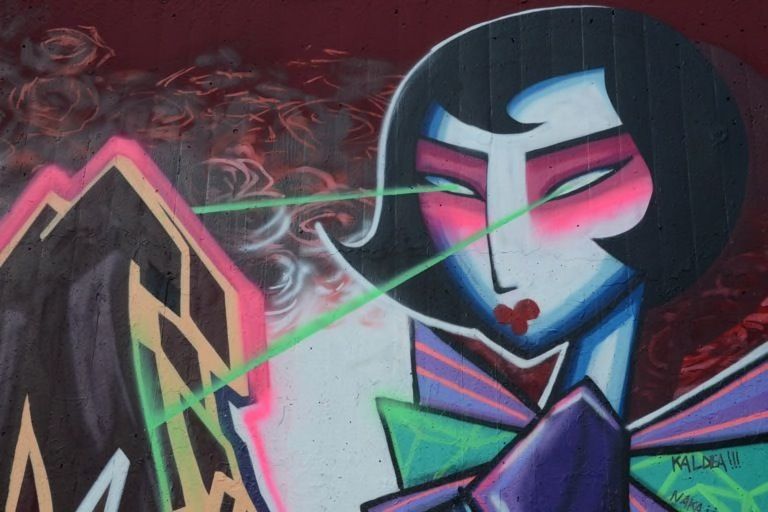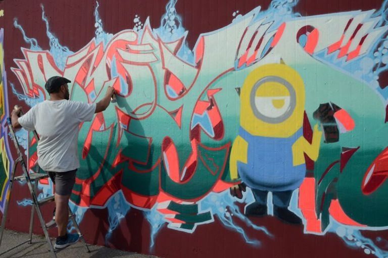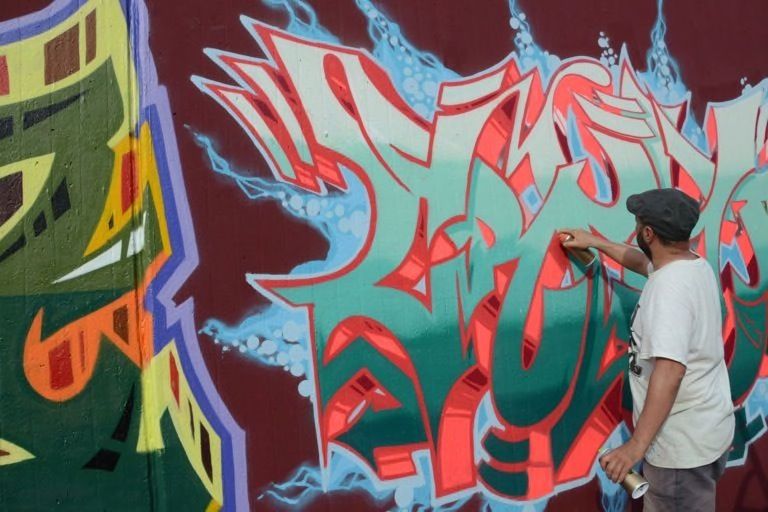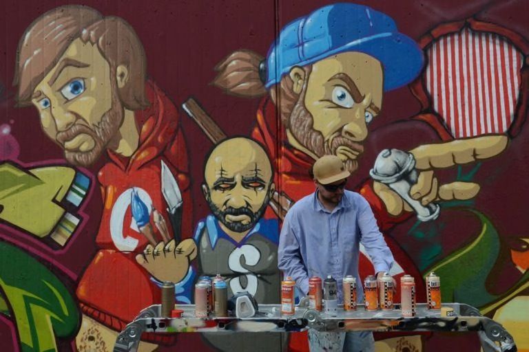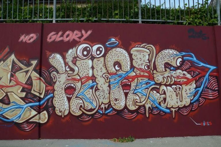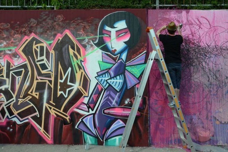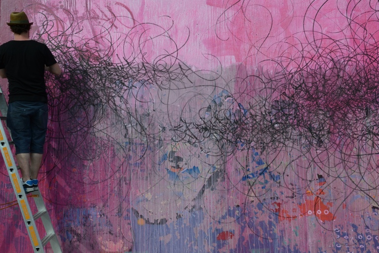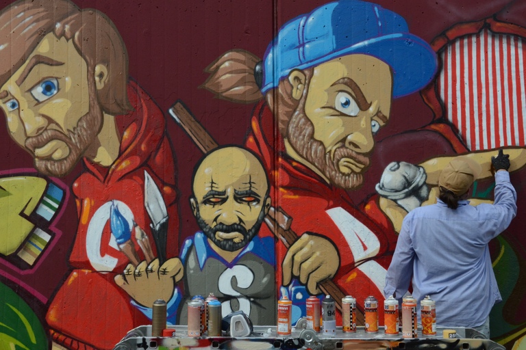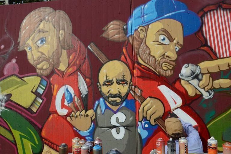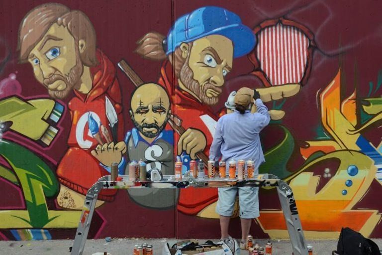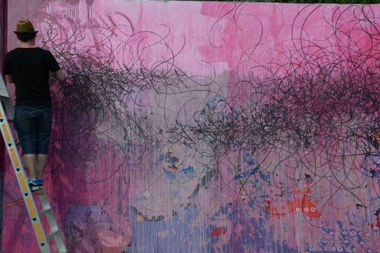 Heuer waren es nicht nur Graffiti-Maler, die ihre gewohnt bunten Motive auf die Wand an der Hohenwarter Straße brachten, sondern auch aus dem verwandten Bereich der Urban-Art waren einige Künstler am Start. Die großformatigen Motive entstanden dabei nicht nur mit Hilfe von Sprühdosen, auch Farbroller, der klassische Pinsel und manch recht eigenwillige, individuelle Technik kam da zum Einsatz.