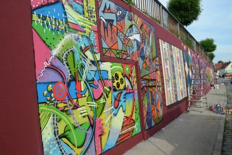 Die Stützmauer an der Hohenwarter Straße in Pfaffenhofen ist von 35 Künstlern aus ganz Deutschland neu gestaltet worden – mit faszinierendem Ergebnis