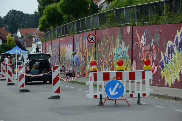 Schaulustige konnten den Protagonisten gestern und heute den ganzen Tag über die Schulter schauen und mit ihnen ins Gespräch kommen. Während der Aktion war die Hohenwarter Straße entlang der Stützmauer halbseitig gesperrt. Der stadtauswärts fließende Verkehr wurde am „Howa-Jam“ vorbeigeführt; der stadteinwärtige über die Äußere Quellengasse umgeleitet.