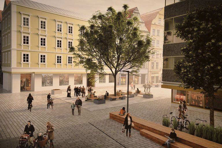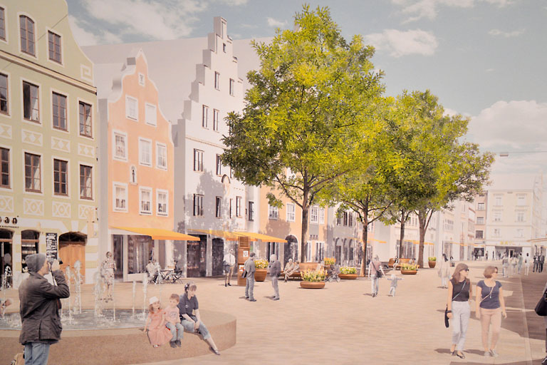 Denn erstens sind die drei Siegerentwürfe und auch die anderen der insgesamt zwölf Arbeiten noch bis 20. Juli im Orbansaal und auch im Internet zu bestaunen. Daneben haben auch die drei Entwürfe – allesamt von Berliner Architekturbüros – nicht das Zeug, endlose Begeisterung hervorzurufen. Denn abgesehen von gestalterischen Details und filigran ausgearbeiteten Marginalien ist allen Arbeiten doch eines gemeinsam. Alle bewegen sich an der gestalterischen Oberfläche, zeigen zugegebener Maßen mitunter nette Ideen im Detail und Urbanität fördernde Gedanken. Aber ob nun ein Brünnlein am Schliffelmarkt steht oder in der Theresienstraße oder ob die Verweilflächen in der Mitte der Ludwigstraße mit mondän anmutendem Belag versehen sind, das dient letztlich kaum der Beantwortung der Frage: Quo vadis Fußgängerzone?
